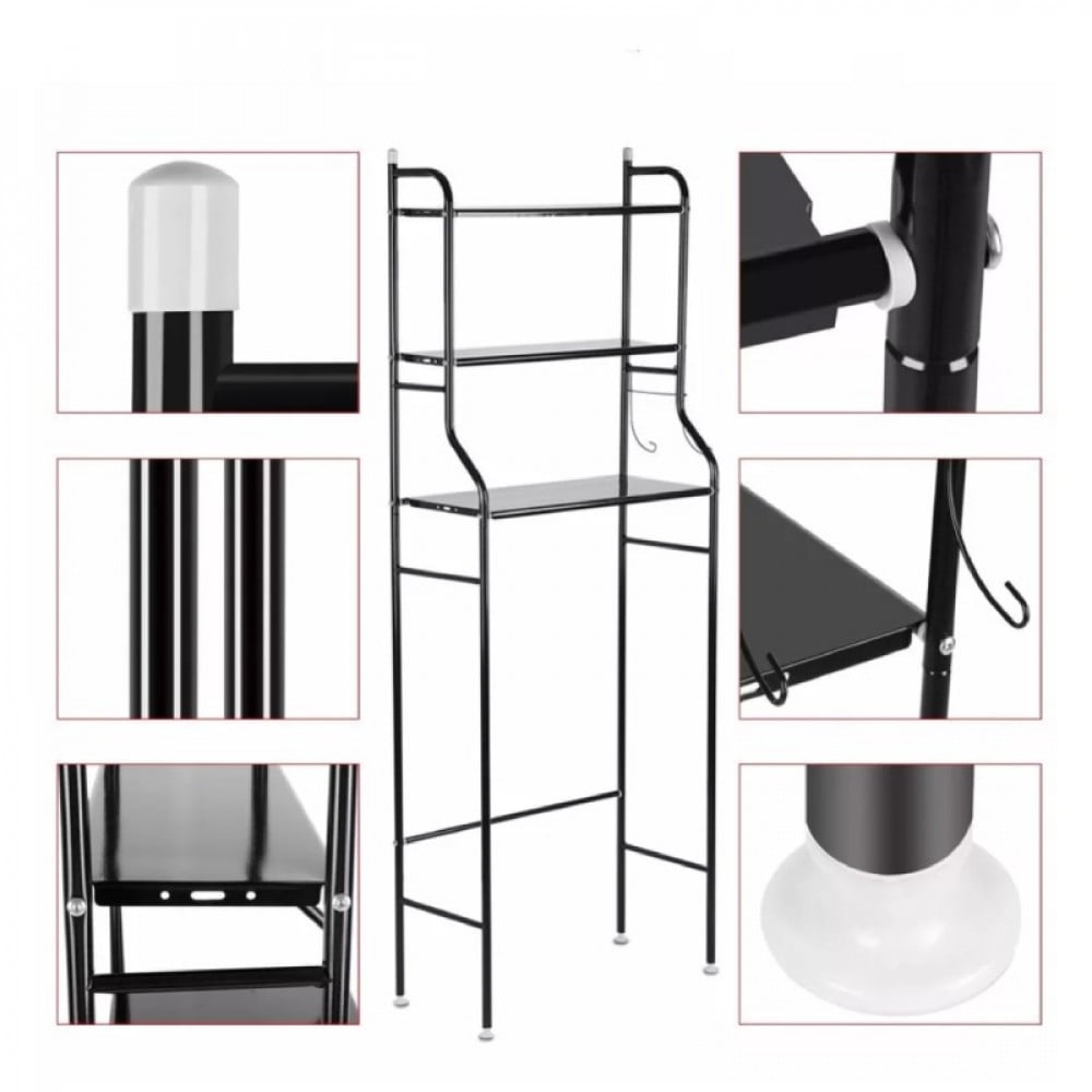- توفير مثالي للمساحة في الحمام، رف حمام لا يحتاج لثقب الحائط ويمكن وضعه فوق المرحاض للاستفادة من المساحة المقتولة. رف تخزين مثالي للمناشف والمناديل الورقية للمرحاض والشامبو والشموع وغيرها من مستلزمات الحمام. كما يمكن استخدامه كوحدة تخزين توضع فوق أي قطعة أثاث مناسبة في منزلك.